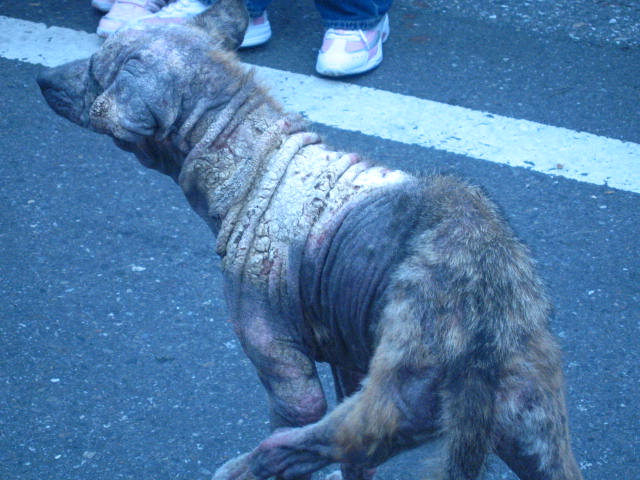 他全身幾乎都潰爛了吧 在路上一直不停不停的抓癢,